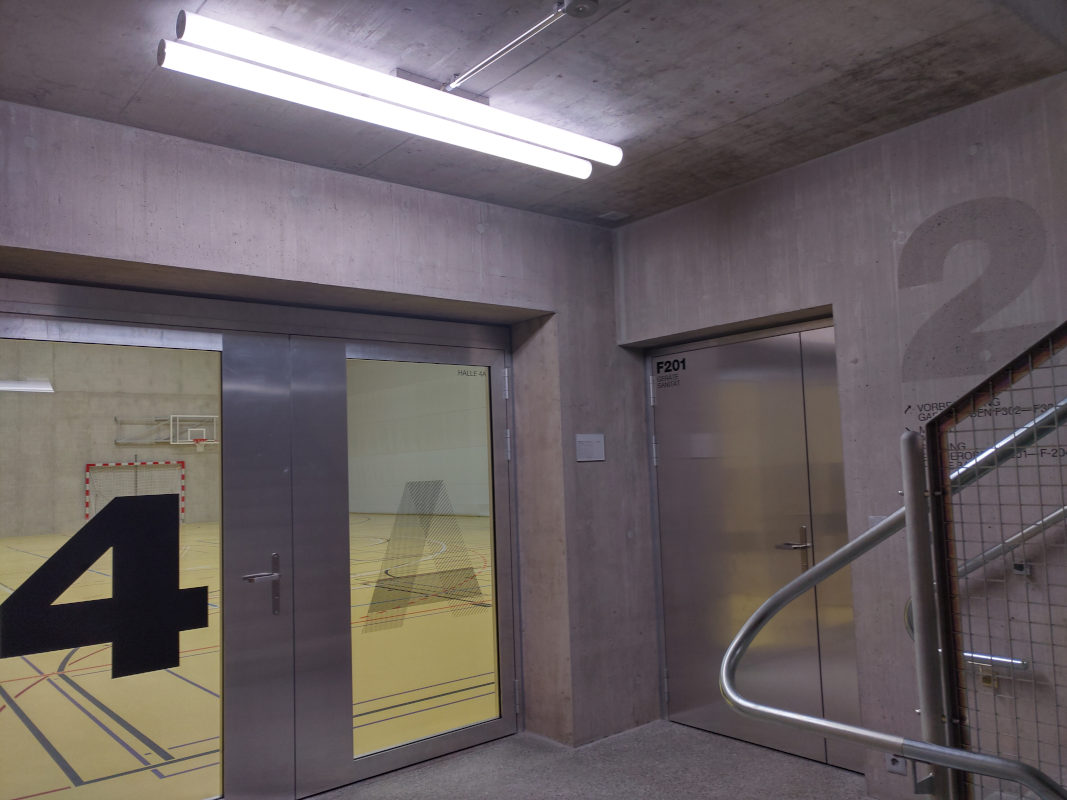 Achtung: die Halle ist nicht im Hauptgebäude, sondern direkt neben der Tramhaltestelle "Kantiallee".