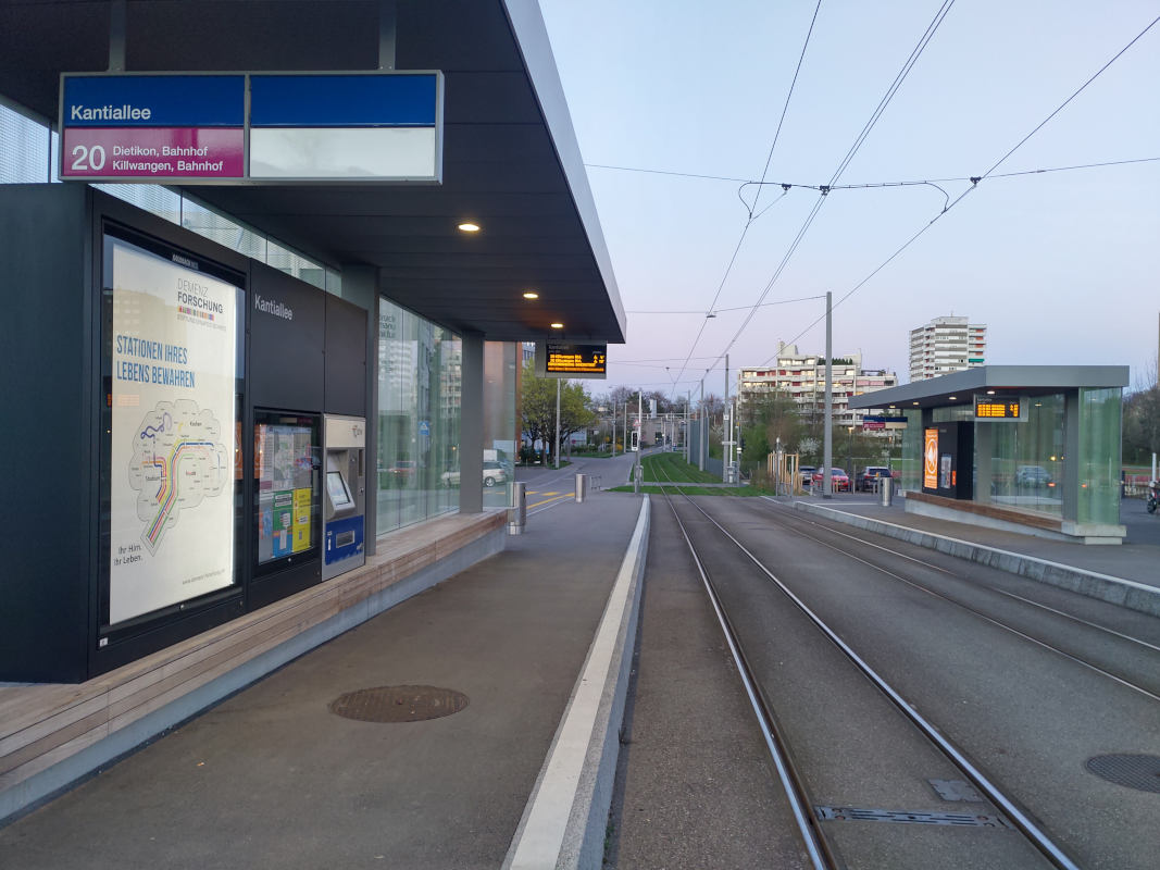 In der anderer Ricthung, fährt das Tram 20 ab Zürich Altstetten um 19:08 und ab Schlieren Zentrum / Bahnhof um 19:16.